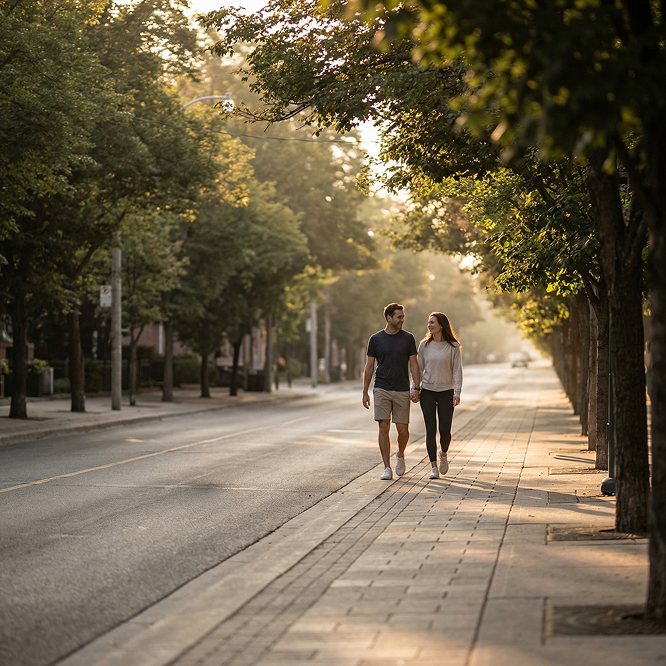 These side streets offer a safe, low-traffic environment for evening strolls or morning jogs.