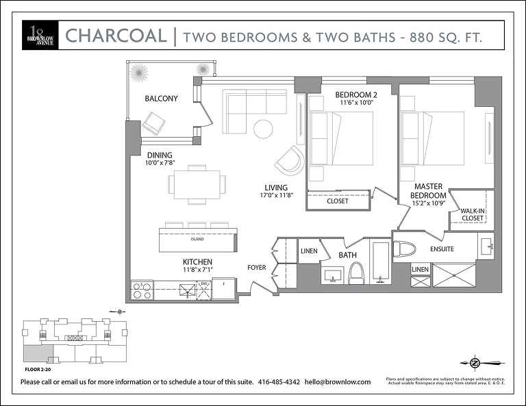 The Charcoal is one of the building’s most sought-after residences, offering 880 square feet of beautifully designed living space that balances open-concept entertaining with the comfort of private bedroom retreats. Ideal for professionals, couples, or those seeking a versatile second bedroom for guests, a home office, or creative studio, this residence delivers thoughtful design with refined finishes throughout.
